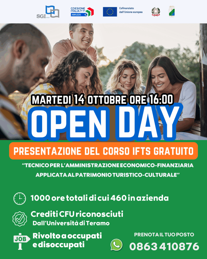 Open Day Presentazione del Corso IFTS Tecnico per l’Amministrazione Economico-Finanziaria applicata al Patrimonio Turistico-Culturale